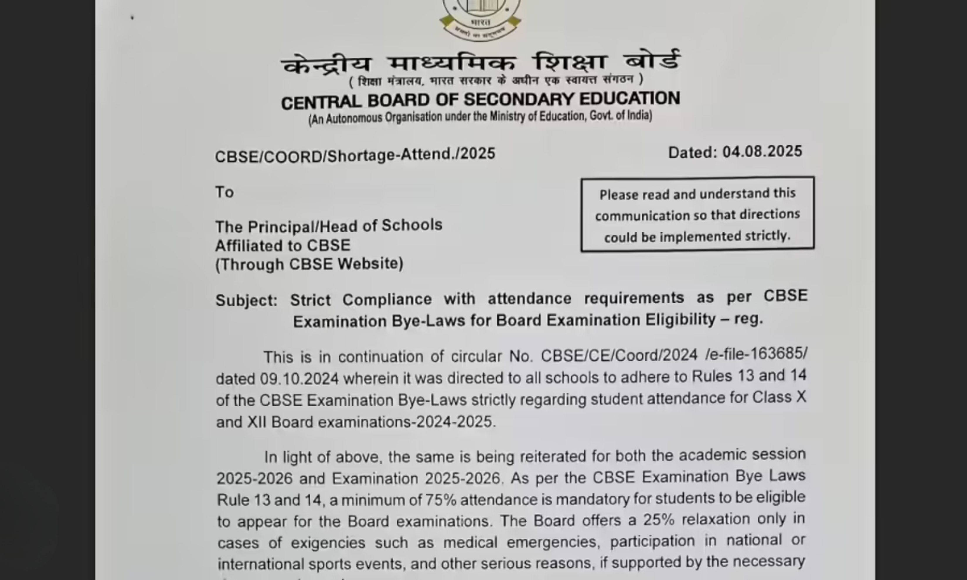 #CBSE has mandated 75% minimum attendance for Class 10 and 12 students in the 2025–26 session to qualify for the 2026 board exams. Strict exemptions, surprise inspections, and zero tolerance for manipulated records underscore the board’s renewed push to curb dummy candidates and… pic.twitter.com/Y9mgi4hdC5
