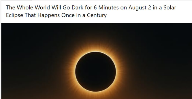 🌞 August 2: The longest solar eclipse of the century! Get ready for 6 minutes of afternoon darkness. What’s really happening in the skies? pic.twitter.com/VZ8up6z6m2